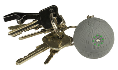 Para que siempre tengas la Estrella de la Muerte a mano, es mejor adjuntarlos a tu llavero. Las baterías requeridas ya están incluidas, por lo que puede comenzar a enviar "rayos de muerte" inmediatamente al presionar un botón y traer luz a la oscuridad (incluso en el lado oscuro de la potencia, esto ocasionalmente no puede dañar).