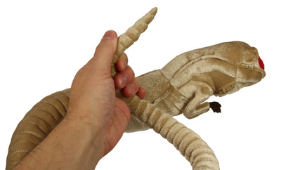 Pero no te preocupes, este aquí es realmente completamente inofensivo (sí, esta vez estamos realmente seguros). Con su impresionante longitud de más de un metro, es una réplica exacta de la criatura de las películas, hasta los pequeños bracitos debajo de la cabeza y los lindos dientecitos en la garganta. ¡Para amar!