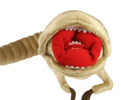 Después del tiempo promedio de incubación, el Alien Chestburster Peluche, un xenomorfo en forma de serpiente, se abrió paso a través del pecho de su ahora innecesario anfitrión hacia el exterior. Y aquí está, el adorable gusano que representa la etapa preliminar de un Alien completamente desarrollado.