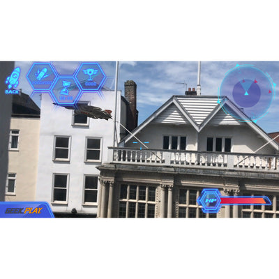 ¡Eres la última esperanza de la humanidad! ¡Los extraterrestres malvados atacan la tierra y solo tú puedes detenerla! ¿Cómo? Simplemente toma tu teléfono inteligente y póntalo en eso Arma AR para juegos de teléfonos inteligentes de realidad aumentada ¡a! ¡Entonces puedes levantar la función de camuflaje de las naves espaciales enemigas y salvar nuestro planeta! De manera real de realidad aumentada, los barcos se muestran directamente en el campo de visión de su cámara, para que la cocina, el dormitorio y el tranvía también puedan servir como campo.