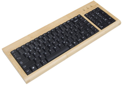 Si te gustaría tener un poco de naturaleza en tu escritorio, ahora hay una alternativa a la planta de interior: La carcasa de este elegante teclado está hecha de bambú auténtico. Solo el bloque de teclas sigue siendo de plástico y se integra perfectamente en la madera con su elegante color negro.