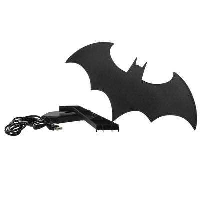 La lámpara podría venir directamente del taller de Bruce Wayne, o quizás más bien del taller de Alfred Pennyworth, porque está pensada hasta el más mínimo detalle: con la base puedes colocarla en cualquier lugar, siempre que haya un puerto USB libre para la alimentación cerca. Alternativamente, puedes usar un adaptador. También puedes quitar el soporte y montar la lámpara directamente en la pared (no se incluyen tornillos ni tacos). El interruptor está en la parte trasera.
