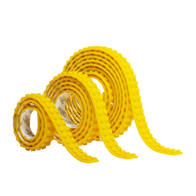 • Cinta adhesiva amarilla con protuberancias en la que se pueden colocar bloques de fabricantes comunes como LEGO