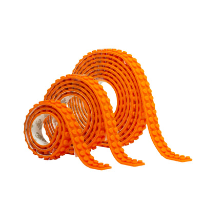 ¡La cinta adhesiva para bloques de construcción elimina este obstáculo en un instante! La parte superior de la cinta adhesiva flexible tiene protuberancias compatibles con bloques de LEGO y otros bloques. A partir de ahora, puedes exhibir tus creaciones con orgullo desde la mesa del comedor hasta el tablero de tu coche. Simplemente corta un trozo de cinta, pégala, coloca los bloques - ¡y listo! ¿Y lo mejor? ¡La cinta se puede volver a pegar varias veces!