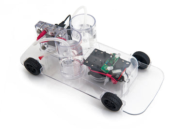El coche de pila de combustible cuenta con una pila de combustible PEM combinada, en la que tanto la electrólisis (es decir, la obtención de hidrógeno y oxígeno del agua) como la conversión del hidrógeno en electricidad tienen lugar. En esta versión, incluso se puede observar cómo se generan los gases de oxígeno e hidrógeno en los dos tanques de agua transparentes.