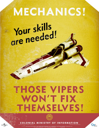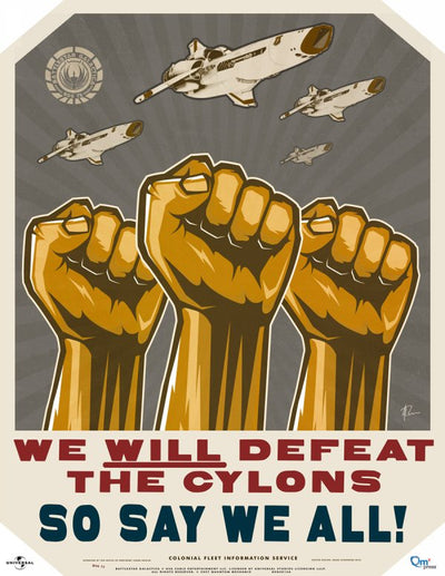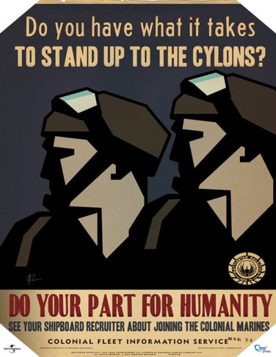¡Ayuda en la lucha contra los Cylons! Muestra tu compromiso con la salvación de la humanidad colgando estos pósters. Estos pósters emitidos por el Ministerio de Información de las Colonias muestran mensajes importantes que pueden ayudar a reclutar e inspirar a otros colonos.
