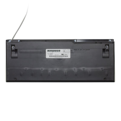 Debido a la placa de acero construida, el teclado es relativamente pesado, lo que significa que también se mantiene estable en el cuadrado, incluso con tipsters energéticos. Por supuesto, ella también tiene los dos consejos obligatorios para inclinar. :) Otra característica especial son los botones extraíbles. Con un poco de agarre, simplemente puede reemplazarlo y limpiar el teclado tan fácilmente. También es posible establecer su propio diseño o incluso usar otras tapas. Otra innovación además de la conexión USB es la tecla Windows, que ahora se ha convertido en estándar. Los detalles tradicionales incluyen las luces de estado por encima del bloque de números.