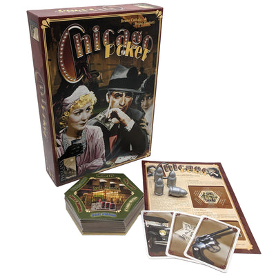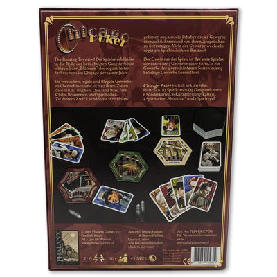 En Chicago Poker - el juego de mesa estratégico dos a seis jugadores a partir de diez años siguen los pasos de estos jefes mafiosos y deben hacer todo lo posible para convertirse en un ícono del inframundo. Pero ten cuidado: Aquí todo está permitido y si no tienes cuidado, ¡rápidamente dormirás con los peces!