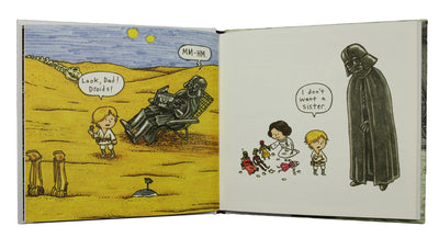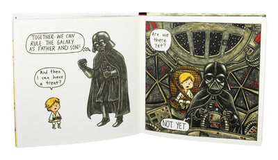 Jeffrey Brown tomó este escenario y escribió un libro muy encantador al respecto: Darth Vader e hijo. En 63 páginas ilustradas detalladas, habla de la vida cotidiana de Darth Vader y Luke; Con mucho sentido del humor y la comedia de la situación y, sobre todo, teniendo en cuenta las condiciones reales, como se les dice en las películas de Star Wars. El señor Brown a menudo usa citas originales de Star Wars, que no solo le dan a la historia un tono auténtico, sino que también es genial de leer y siempre te hace sonreír y reír :)
