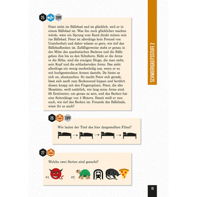 Solo aquellos que están familiarizados con las ciencias naturales, con películas y series, así como en general con la cultura nerd, pueden luchar a través de las 59 páginas. Pero no se preocupe, por supuesto, las respuestas a todas las preguntas también se imprimen.