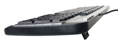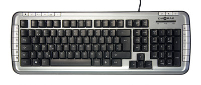 Nuestro teclado Dvorak es una versión alemana y tiene 104 teclas más 21 teclas de función para volumen, estado de reposo, etc. En el diseño DVORAK, además, se incluyen muchos caracteres especiales útiles; por ejemplo, en la tecla e no solo se encuentra la E sino también el € (símbolo de euro) y el ¢ (símbolo de centavo). La tecla p alberga, además de la P, el símbolo de Pi. Se incluye una tabla con todos los caracteres.