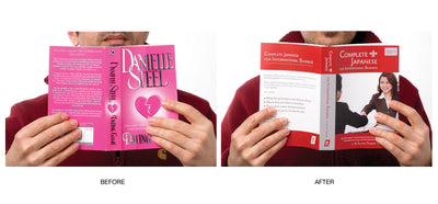La portada falsa consiste en la tapa de un libro particularmente inteligente, que puedes colocar alrededor de otro libro. Para tus conocidos, parecerá que estás leyendo un libro difícil sobre física cuántica (¡Edición Difícil!) o que estás mejorando tu japonés de negocios.