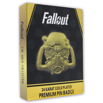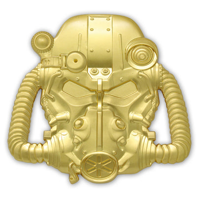 • Pin recubierto con oro de 24 quilates en forma de casco de Armadura Potenciada de la serie de videojuegos Fallout