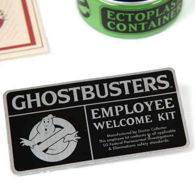 Nos complace darle la bienvenida a nuestras filas y estamos ansiosos por trabajar con usted para acabar con los fantasmas traviesos, los espectros traviesos y, por supuesto, con el Slimer. ¡Para que pueda comenzar de inmediato, hemos preparado para usted el paquete de bienvenida de los Cazafantasmas !
