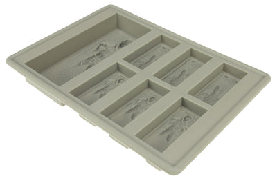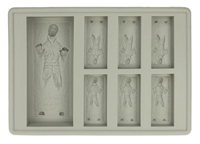 • Molde de silicona con una figura grande y seis pequeñas de Han Solo en carbonita para cubitos de hielo, bombones, etc.