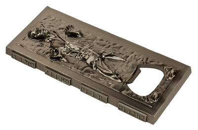 Para abrir su bebida isotónica de la manera más elegante y adecuada para un cazarrecompensas, Boba Fett solo tiene una opción: el Abridor de botellas Han Solo en Carbonita :) Así, cada vez que abre una botella, recuerda uno de sus mayores logros: congelar a Han Solo y luego entregarlo a Jabba the Hutt, lo que le valió 400,000 créditos - 250,000 de Jabba y otros 150,000 de Darth Vader. Si eso no es nada, incluso un cazarrecompensas puede vivir cómodamente por un tiempo y comprar muuuuuchas cajas de cerveza ;)
