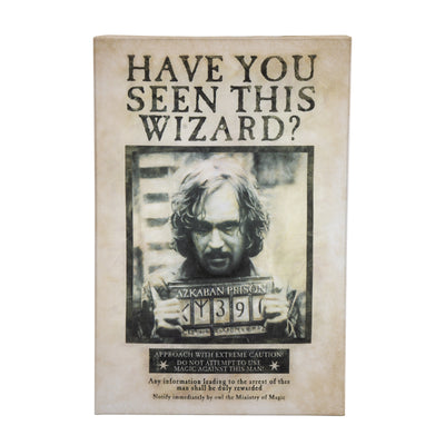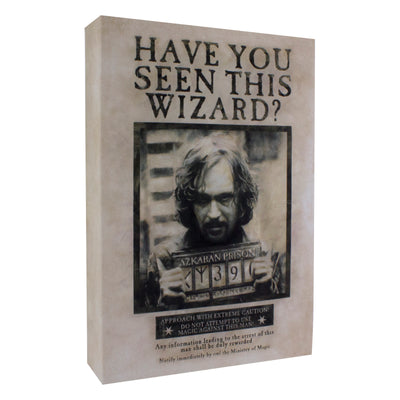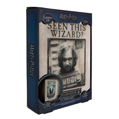 ¡El criminal más buscado del mundo mágico, Sirius Black, ha escapado de Azkaban una vez más! Según los rumores, es inocente, pero no deberías correr riesgos. Así que memoriza bien el cartel de búsqueda del encantador criminal en el Harry-Potter-Luminart "Sirius Black".
