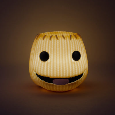 La lámpara Little Big Planet Sackboy está inspirada en la cabeza de Sackboy de la serie Little Big Planet. No solo su sonrisa satisfecha, sino también la cálida luz de la lámpara iluminarán tu habitación y la harán aún más acogedora. Al encender la lámpara, suena un sonido característico que Sackboy hace en el juego. Se alimenta con 2 pilas AAA (no incluidas).