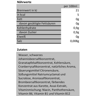• Contiene, entre otros, grosella, granada, arándanos rojos y moras