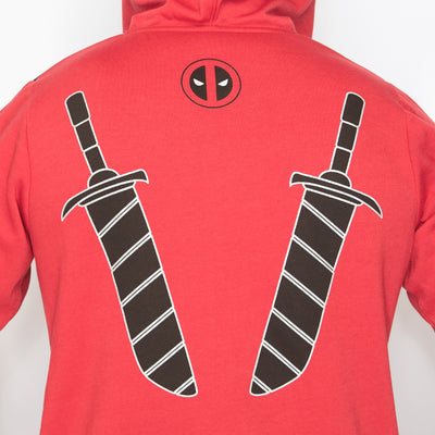 ¿Listo? Bien, pasemos al siguiente paso: ¡Ponte el Marvel Deadpool Jumpsuit! ¡Este mono suave y esponjoso con capucha te convertirá en una copia perfecta de Wade Wilson en un abrir y cerrar de ojos! ¡Incluso las espadas en la espalda están incluidas! Previsor como siempre *guiño*, Deadpool incluso se ha asegurado de que el traje, gracias a su talla única, le quede bien a casi todos los reclutas. Paso número 3: Aprende a preparar los chimichangas perfectos... ;)
