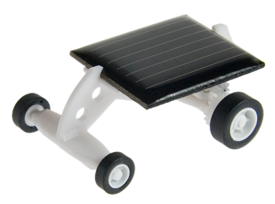 El efecto funciona así: La parte superior del mini coche solar es una pequeña célula solar que alimenta un motor en el eje trasero del vehículo, tan pronto como la luz solar directa incide en el coche y este motor mueve entonces las ruedas.