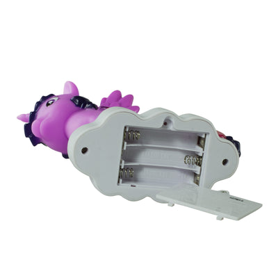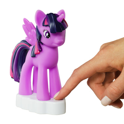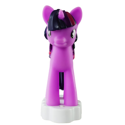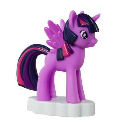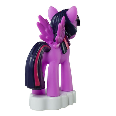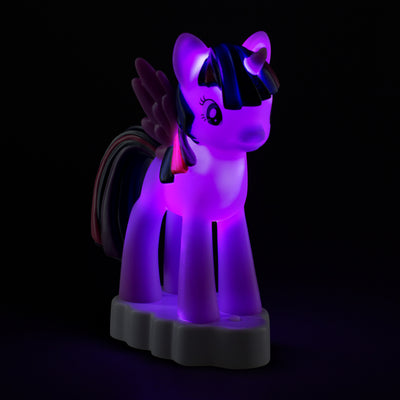 Todas sus nuevas necesidades mágicas de Pony Friend son tres baterías AAA que no están incluidas. Encendido y apagado, apague la lámpara con el botón frente a las cascos de Twilight Sparkle y irradia la luz púrpura relajante. Por supuesto, el Alicorn tiene todas las placas importantes que conoce de la serie: cuerno, ala, mane y cola y asteriscos de dos cuores en el flanco.