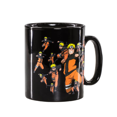 Con la taza térmica Naruto Shippuden de 460 ml puedes comenzar el día como un verdadero Shinobi. Tan pronto como llenes el vaso con un líquido caliente, el diseño del vaso cambia: detrás de Naruto aparecen un montón de clones de sombra, en perfecta armonía con su Jutsu más conocido, y debajo del logo en la parte trasera, kunai y shuriken giran por el aire. Hablando de eso: estamos seguros de que este efecto también se puede desencadenar con una porción de ramen. ;)