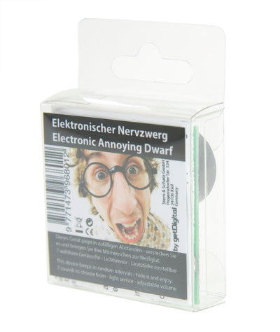 El Enano de los nervios es un pequeño dispositivo electrónico que emite un sonido notable a intervalos aleatorios. El dispositivo es tan pequeño que puede esconderse sin problemas y casi de manera invisible. Esta combinación es ideal para volver locos a tus semejantes, ya que pasarán una eternidad buscando la fuente de los sonidos.