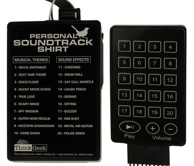 Las posibilidades son variadas. Esta camisa es un excelente medio para defenderse de manera efectiva en las fiestas o en discotecas contra la mala elección de la música o en reproducir sus últimas piezas favoritas sin vestíbulo (ruidoso o tranquilo, tal como desee, porque el volumen, por supuesto, también es ajustable). O puede usar los efectos de sonido de juegos o películas de computadora conocidos y en el futuro para diseñar su vida como salto 'n' run, shooter o jrpg. Sin embargo, usa la camisa de la banda sonora: su Realife lo hará aún más emocionante y variado que las películas y los juegos de computadora.