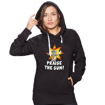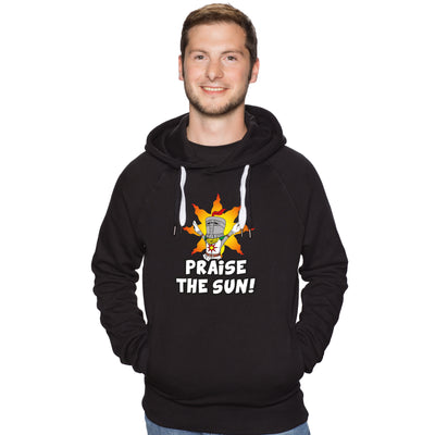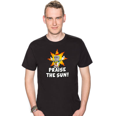 Pero también hay otra manera. Como muestra la camiseta "Praise the Sun", también puedes ayudar a otros jugadores a sobrevivir a jefes, invasiones de otros jugadores y otras maldades. ¿Cómo? ¡Pues convirtiéndote en un Sunbro! Los miembros de los Warriors of Sunlight tienen como objetivo seguir el ejemplo de Solaire de Astora y hacer del mundo un lugar mejor. ¡Únete también! ¡Alaba el Sol!