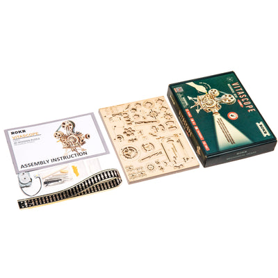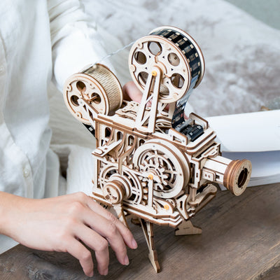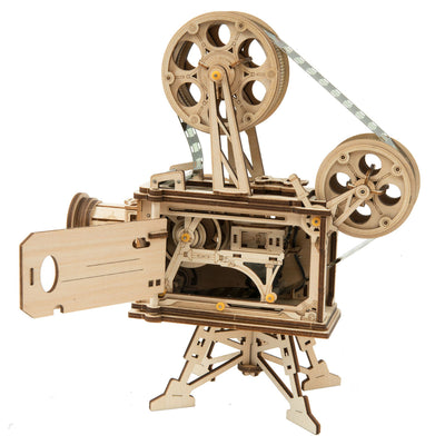 ¡Este conjunto exigente no solo prueba sus habilidades de construcción y su comprensión de la mecánica, sino que también lo recompensa con un proyector de cine de la vieja escuela funcional! Además de las muchas piezas de madera que se entregan en forma de paneles de madera contrachapada previos a la láser, el kit también incluye varias herramientas y algunas pequeñas piezas de plástico o metal para redondear la mecánica y para facilitar el ensamblaje. Y al final puede usar la tira de película cerrada para determinar si hizo todo bien. Desafortunadamente, debe aumentar el proyector usted mismo y no puede simplemente sentarse, pero como un dispositivo genial y entretenido (por ejemplo para impresionar a los invitados), esto casi completamente hecho de madera es perfecto.