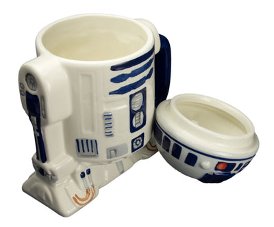 Hay algunos rumores de que R2D2 trabajó como máquina de café y cubo de basura en tiempos anteriores. No estamos seguros de si estos rumores son ciertos, pero sabemos que este R2D2 está bastante satisfecho con su trabajo como taza de cerámica.