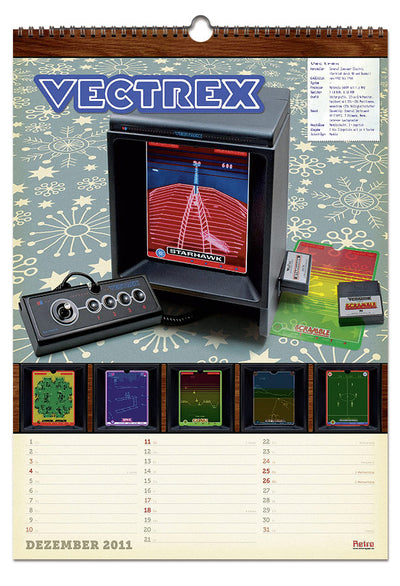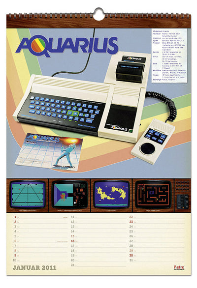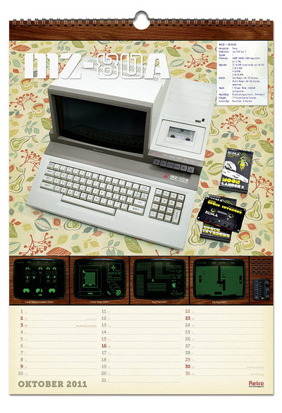El calendario para el año 2011 muestra 12 computadoras y consolas diferentes de los años 70, 80 y 90. Para cada mes, hay una gran imagen de la computadora retro así como información técnica, capturas de pantalla de juegos y otros extras.
