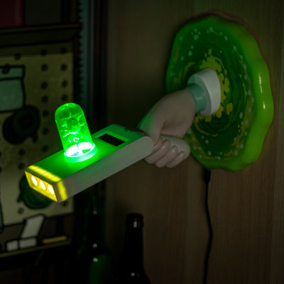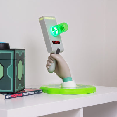 Para que también puedas divertirte un poco con los portales, hay Lámpara de arma de portal de Rick y Morty! Rick le da personalmente esta fuente de luz a través de un pequeño portal: debe decidir qué hace con él. Puede colocar la lámpara libremente o sujetarla a la pared y, a partir de ahora, espero una iluminación elegante. La fuente de alimentación se lleva a cabo a través del cable USB o tres baterías AA (no incluidas). Alternativamente, ¡por supuesto también puede combinar la lámpara con un plumbus! :)