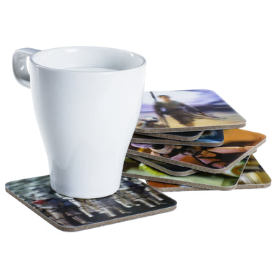 • Conjunto de ocho posavasos gruesos con diferentes motivos de Star Wars Episodio VII para vasos y tazas calientes.