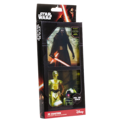 El efecto especial de las imágenes se crea mediante las denominadas imágenes lenticulares, que probablemente conozcas como imágenes que se mueven. Dependiendo del ángulo de visión o si mueves el posavasos, se crea una ilusión espacial a través de los muchos pequeños prismas en la superficie. Y apenas se puede disfrutar mejor que con motivos de The Force Awakens.