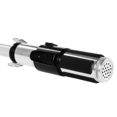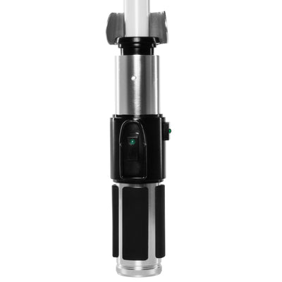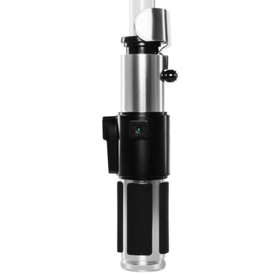 Antes de ir a un tracto de venganza con su nuevo sable de luz, considere: Un Jedi usa la fuerza para el conocimiento y la defensa, nunca para el ataque. Bueno, pero puedes atacar un poco. Esta es la única forma de usar los grandes efectos de sonido del sable de luz FX. :) Dependiendo de si simplemente lo balanceas un poco o lo haces bien, deposita en tu oponente u otro sable de luz, permite que el sonido original correcto escuche de las películas. Los efectos de iluminación también corresponden al original: si enciende el sable de luz, la cuchilla se eleva, es decir, la luz verde se acumula con fluidez y al apagar. Silbido.
