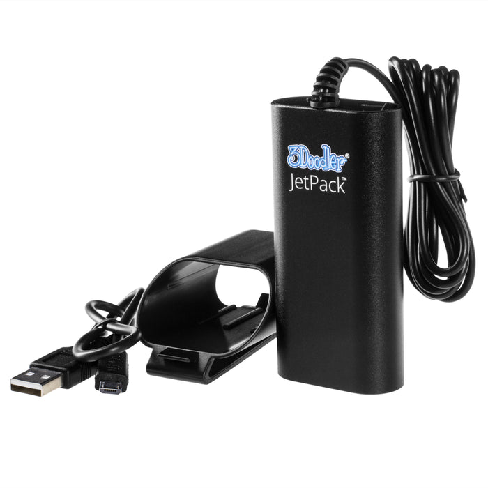 Hasta ahora, siempre tenías que depender de una toma de corriente cercana para los proyectos más grandes. Con el JetPack, ahora sí que puedes garabatear en cualquier sitio, ya que la pequeña batería proporciona energía para 2-3 horas de funcionamiento. La duración exacta depende del material utilizado: si eliges plástico PLA, la energía dura unas 3 horas, con plástico ABS unas 2 horas, ya que el ABS se procesa a mayor temperatura.