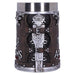 Después de estas emocionantes pero agotadoras horas en la Italia del Renacimiento, es hora de tomar un poco de cerveza, vino, refresco de cola, zumo o lo que más te apetezca de estos vasos para beber con licencia oficial de la Hermandad de Assassin's Creed. Puedes elegir entre una copa de vino y una jarra de cerveza, cuyo diseño se adapta a la espada oculta de los Asesinos: desde el aspecto realista del cuero y el metal ricamente decorado, hasta los detalles rojos y el logotipo de AC: Hermandad perfectamente incrustado, todo recuerda las sangrientas aventuras de Ezio en la lucha contra César Borgia y los templarios.