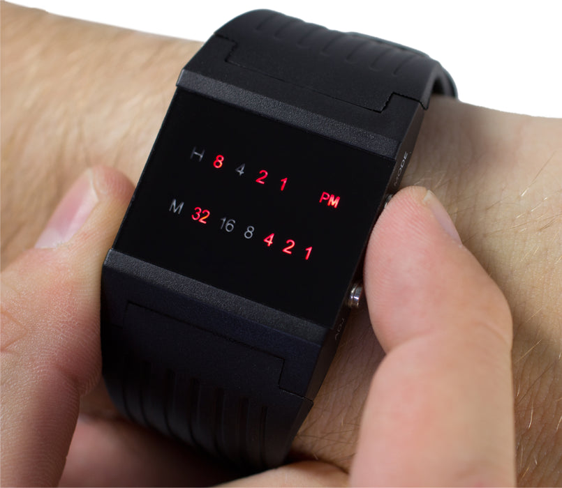 Por supuesto, no hace falta que le expliques cómo funciona el Reloj de Pulsera Binario a un auténtico friki, pero para todos los demás nos gustaría explicarte brevemente cómo funciona: