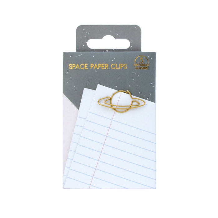 • 5 bunte Büroklammern mit verschiedenen Weltraummotiven