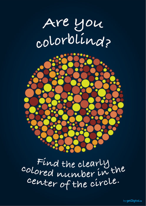 Seguro que has visto alguna vez un test como éste: Si tienes una visión normal de los colores, puedes ver un número o un símbolo en los puntos de color. Si no se ve ninguna forma, el diagnóstico de daltonismo no está muy lejos.