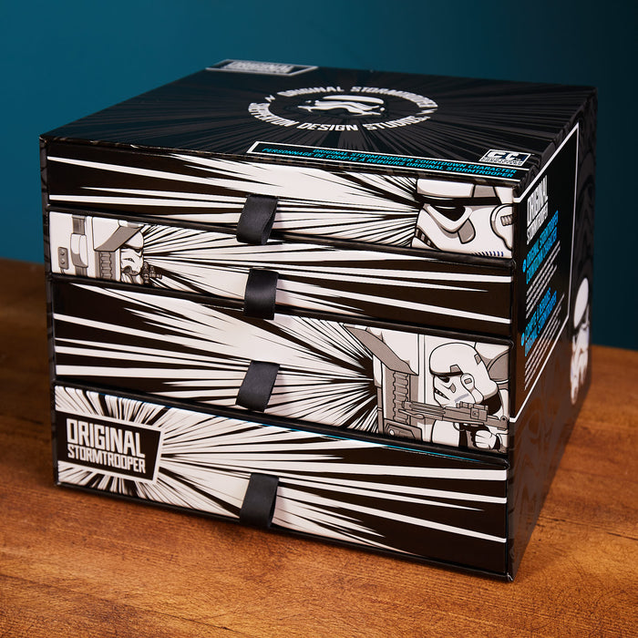 O puedes regalarte tu propio Stormtrooper en otro momento del año y simplemente desembalarlo todo de una vez. Las piezas individuales del kit de plástico se encajan a presión, ¡sin necesidad de pegamento!