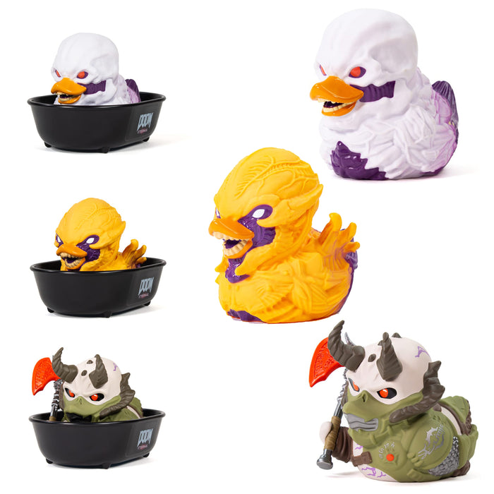 Alle deine Entchen- äh, Verzeihung, alle DOOM-Badeenten werden in einer speziellen TUBBZ-Display-Verpackung inklusive Badewanne geliefert, mit der du die Sammlerstücke auf deinem Regal geschützt ausstellen und perfekt übereinander stapeln kannst.