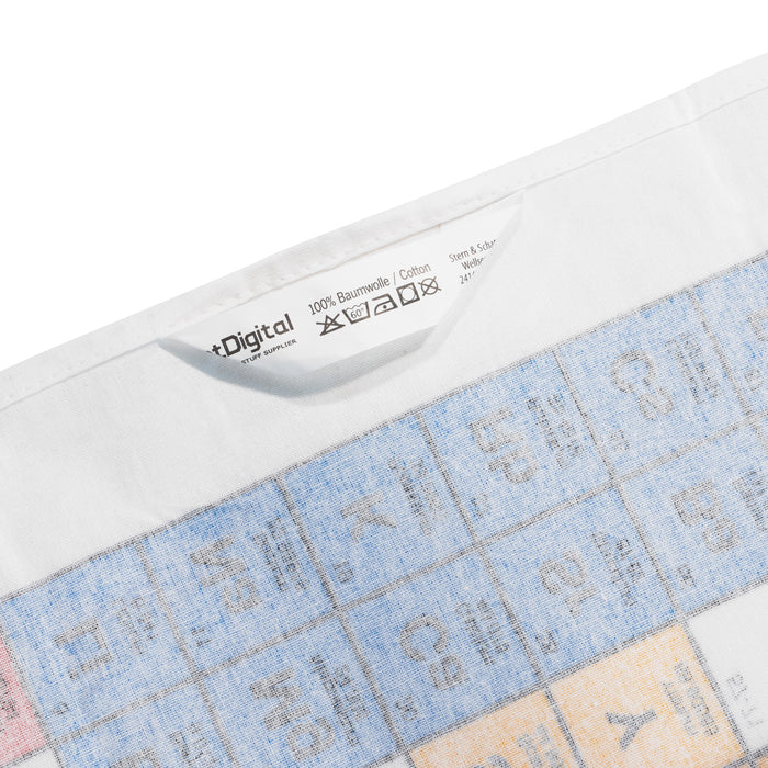 • Paño de cocina con una ilustración detallada de la tabla periódica