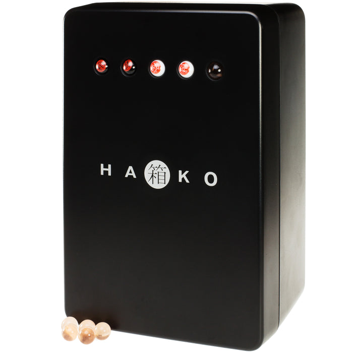 Hako significa caja en japonés. Hay que reconocerlo: Desde fuera, el Hako no parece mucho más. Pero los verdaderos valores están en el interior, como todos sabemos ;) Detrás de la tapa hay una especie de ingenioso recorrido de canicas que resulta ser un complicado puzzle.