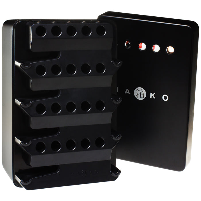 La mayoría de las variantes del juego requieren dos o más jugadores. Ya se incluyen cinco canicas, dos blancas, dos negras y una transparente. Sin embargo, también puedes añadir más canicas del tamaño adecuado. Si no estás jugando, puedes enganchar las cinco canicas en el interior de la tapa, así Hako también queda decorativo ;) Tu caja Hako se selecciona al azar entre 5 colores diferentes: Negro, blanco, azul, rosa o amarillo.