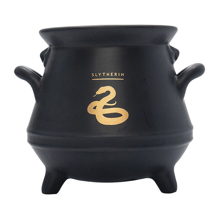 Tetera con forma de caldero de Harry Potter, con el escudo de Hogwarts, y tazas de té a juego de las casas Slytherin y Gryffindor