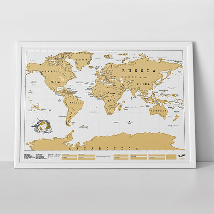 El mapamundi rascable Scratch Map es una estupenda decoración de pared para todos los trotamundos a los que les gusta volver a casa de vez en cuando, los amantes de los viajes que ya sueñan con nuevos viajes y los padres que quieren marcar el paradero de sus hijos trotamundos en este mapa tan especial.