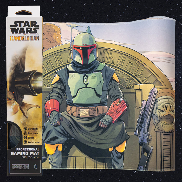 Mit dieser riesigen Mousemat bist du für die nächsten Weltraumschlachten am PC perfekt gerüstet. Die Mandalorian Boba Fett XL Mousemat bietet auch für die verrücktesten Verrenkungen mit der Computermaus genug Platz, was dir gerade in actiongeladenen und schnellen Spielen einen entscheidenden Vorteil verschaffen kann. Außerdem ist die Oberfläche darauf optimiert, dass deine PC-Maus besonders schnell und präzise darüber gleitet.